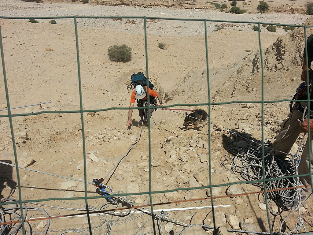 מכאן ואילך העניינים מתוקתקים: בועז, עילם, אלון וזיו עומסים רתמות וקרסים וחבלים וקסדות – ומתכננים את החילוץ. מישהו (בועז) מגיע מכיוון נחל ערוגות ומתחיל לטפס על המצוק התלול ואילו השלושה מתקרבים ליעד מכיוון הטיילת, וביחד עושים הערכת מצב. אם יהיה צורך – בועז מוכן לקליטת הכלב והיעל במדרון, ואילו זיו מתקדם לרוקי מלמעלה. ההחלטות מתקבלות תוך התנסות בשטח. רוקי, שרואה שבאים לעזרתו, מגייס כוחות ובעזרת זיו שלידו ובסיוע עילם ואלון שלמעלה – הוא מועלה חזרה לטיילת. כעת נותר לבועז לסייע ליעל – אבל מתברר מיד שהיעל, שקרא בתהילים שהָרִים הַגְּבֹהִים לַיְּעֵלִים - ברגע שהמדרגה העליונה התפנתה, קיפץ עליה ומשם מצא בנקל את דרכו במשעולים הצרים והתלולים הביתה.