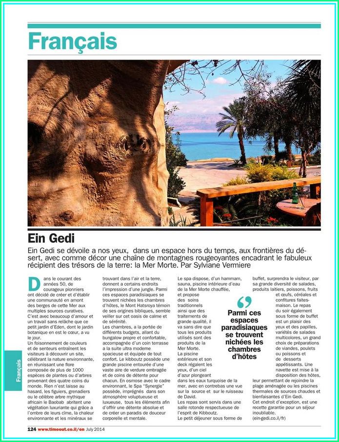 הכתבה פורסמה במגזין התיירות הישראלי Timeout Magazine, המופיע באנגלית וצרפתית