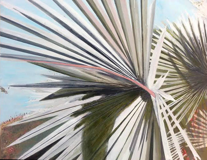 סדרה של ציורי הדרך , ההרים בדרך ירושליים לכיוון ים המלח ולאחרונה אני מתמקדת בענפי הדקל הצומחים בחצר קיבוץ עין גדי.