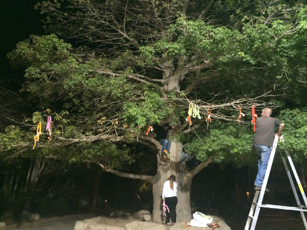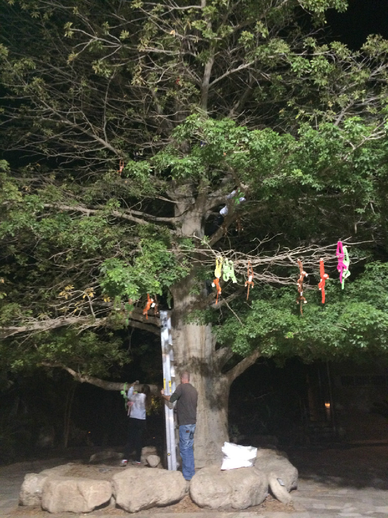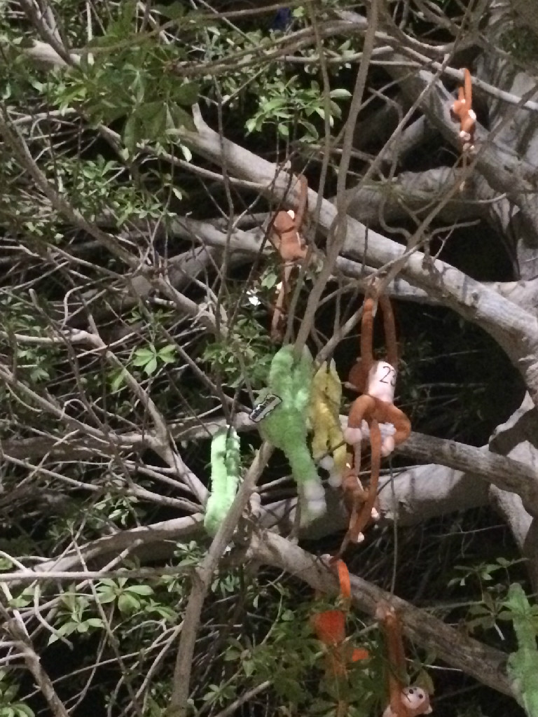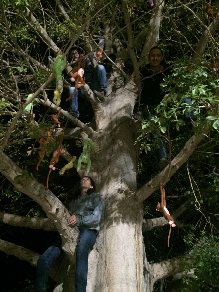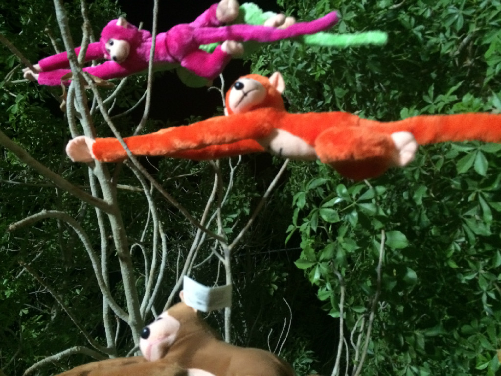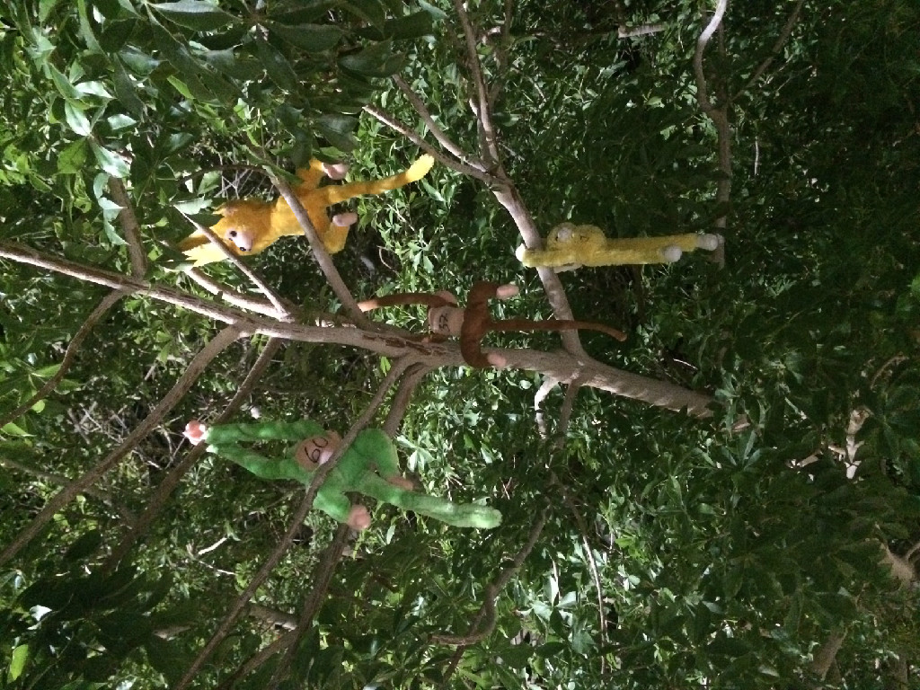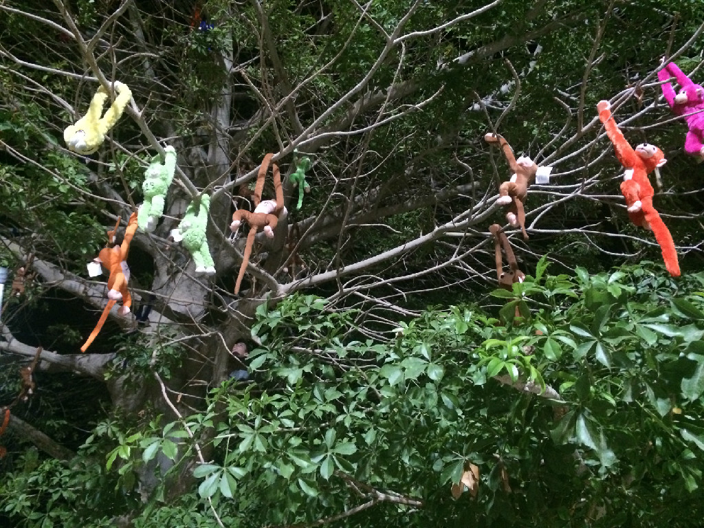 ברחבה - התקהלות הומה: על עץ לחם הקופים אטרקציה. מבעוד מועד הכינו ילדי נוער עין גדי 60 קופים, מספרו כל אחד ואחת וטיפסו ותלו אותם על הבאובב שברחבת חדר האוכל. עכשיו, אם יש לך ילד שרוצה קוף – עליך לטפס על העץ או למצוא דרך יצירתית אחרת ולקטוף קוף לילד. והילדים מיד התאהבו בקופיפים, חיבקו ותלו אותם על צוואר.