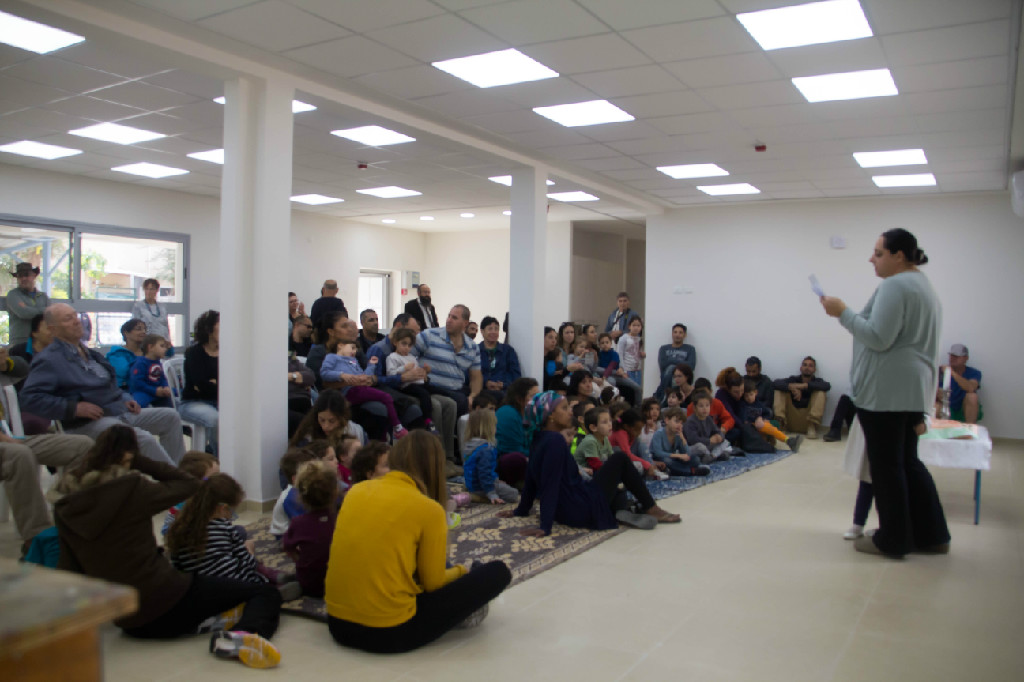 בפתיחה קראה עידית הקר, רכזת הגיל הרך, מילים שכתב נמרוד הקר, מנהל הקהילה (ובן זוגה):