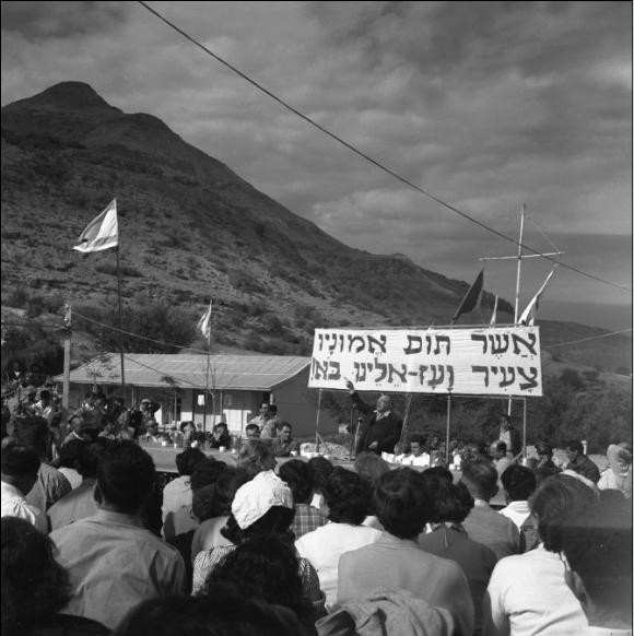 חולצות לבנות בוהקות, שירה וריקודי הורה סוערים בוקעים מהתמונה של חלוצי המתיישבים בעין גדי.