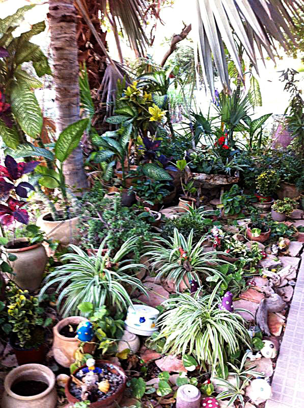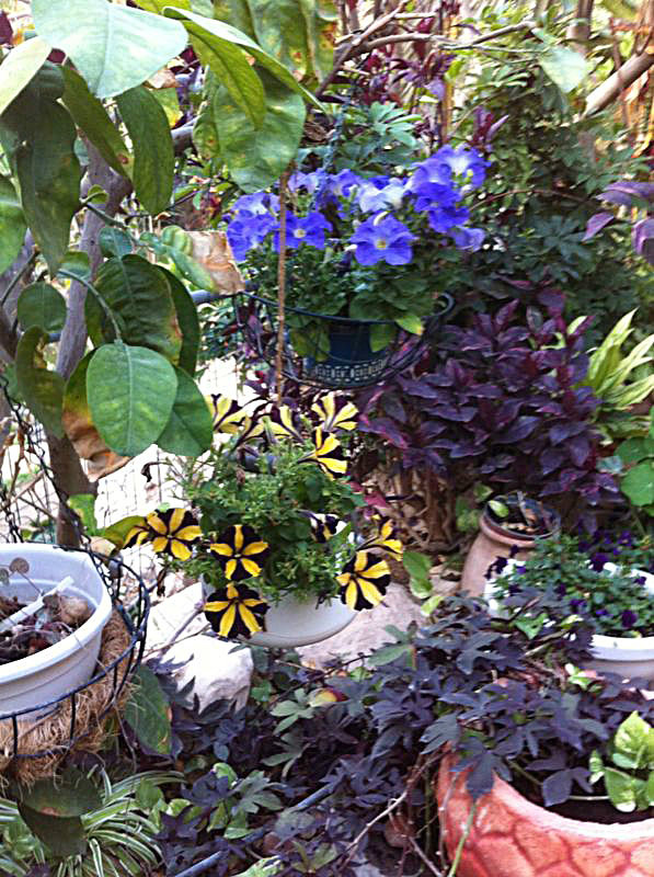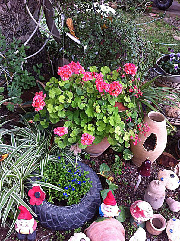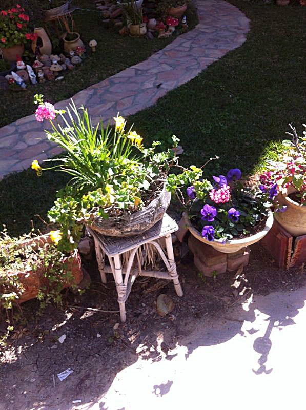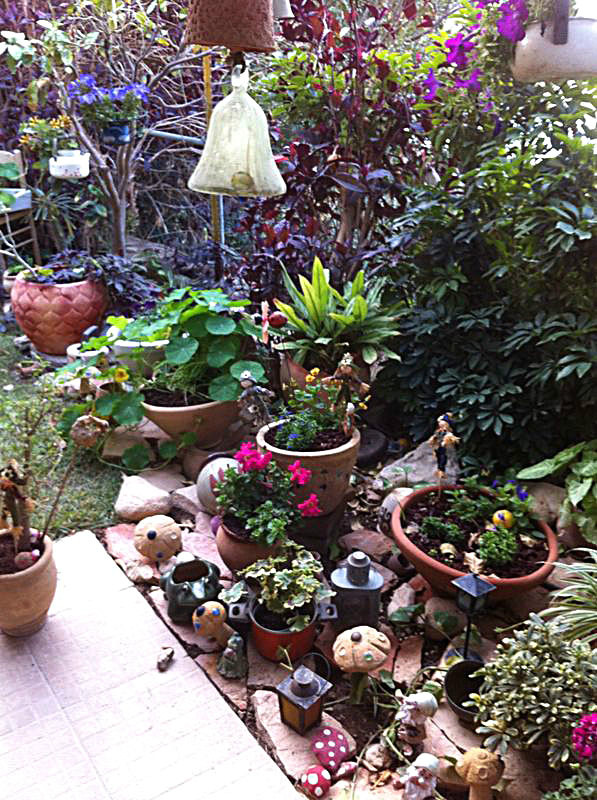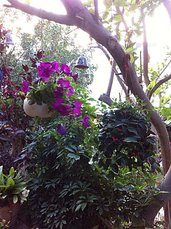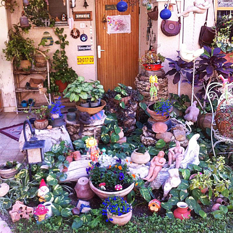 משפחת הקר, יהודית ואמנון, מטפחת בחצרה גינת עציצים ססגונית, כעת בשיא הפריחה. יופי של יופי.