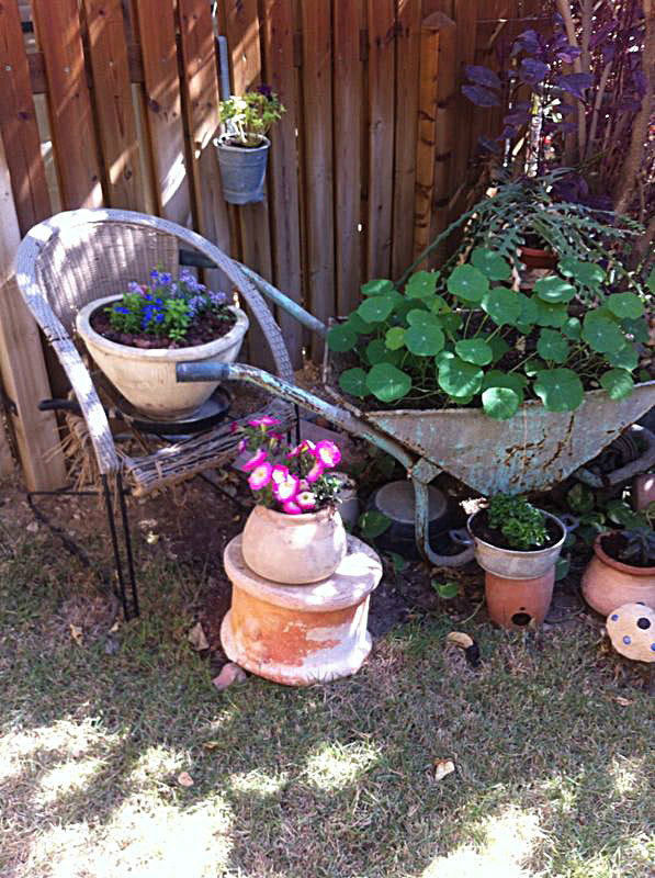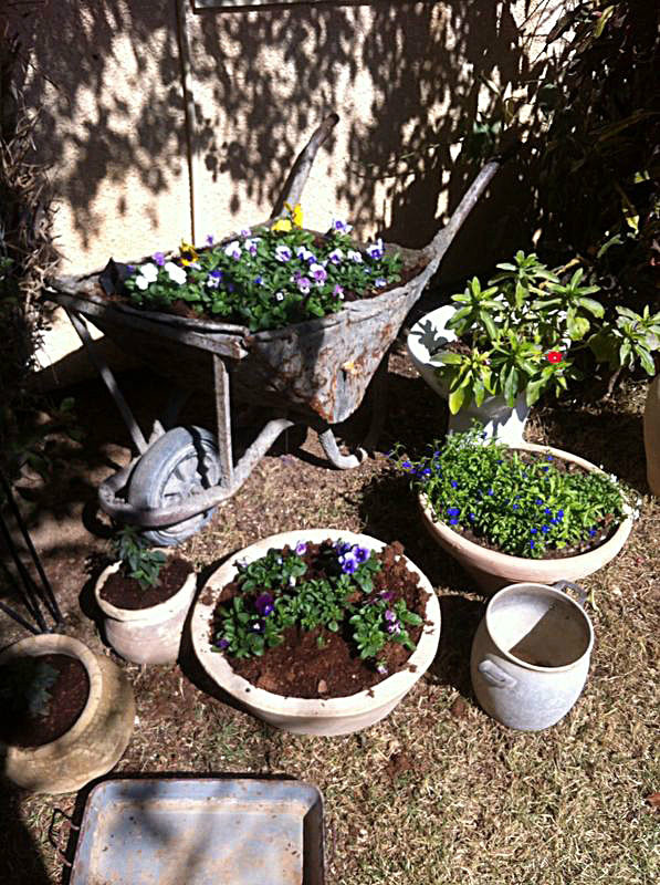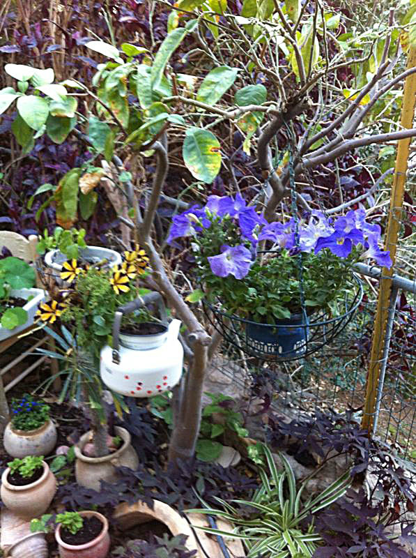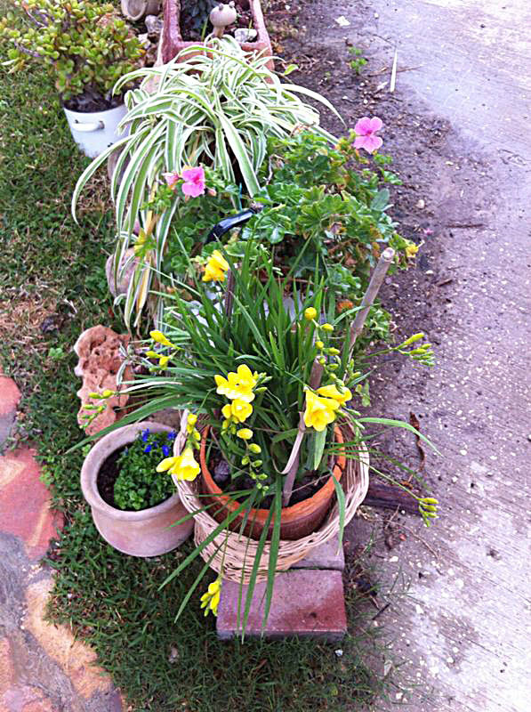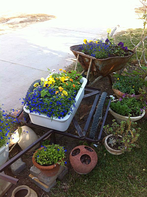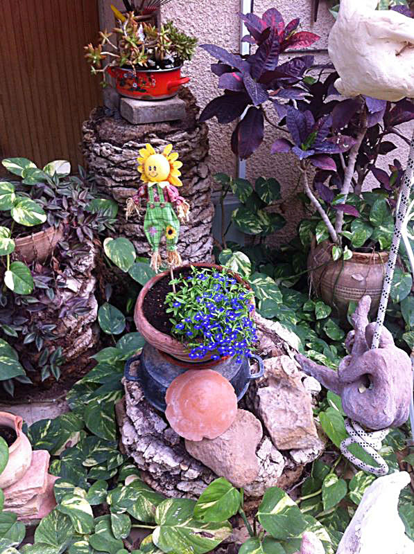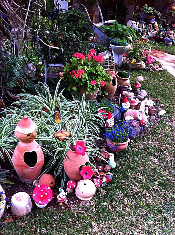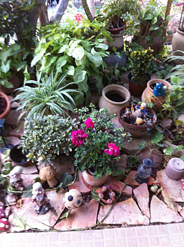 משפחת הקר, יהודית ואמנון, מטפחת בחצרה גינת עציצים ססגונית, כעת בשיא הפריחה. יופי של יופי.