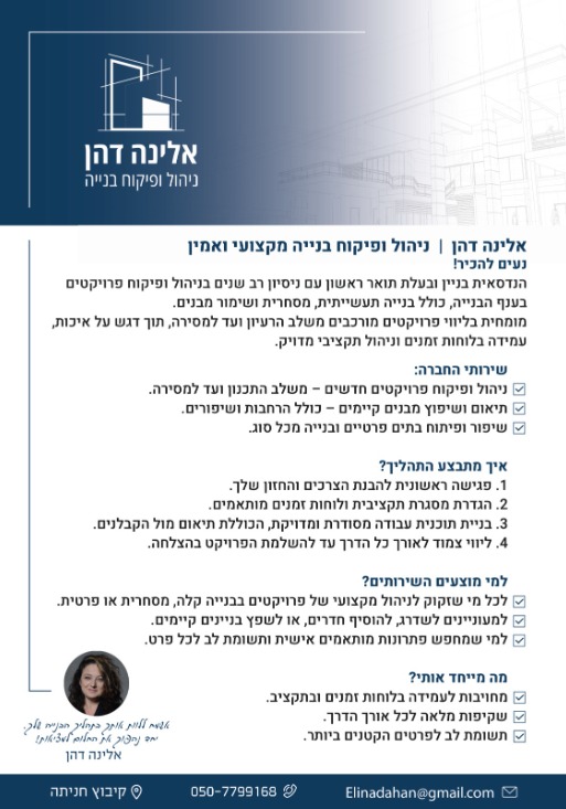 אלינה דהן ניהול ופיקוח בניה