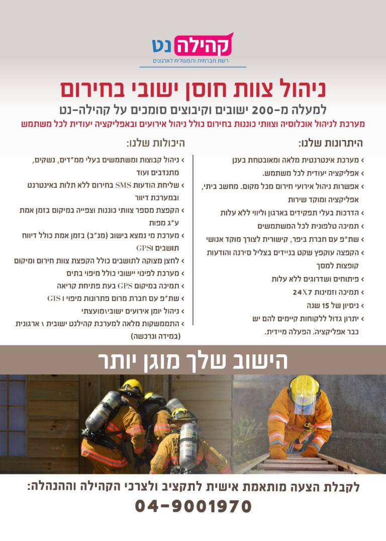 מערכת לינהול אירועי חירום, ניהול אוכלוסיה וניהול צוות החוסן הישובי מאפשרת הקפצה של כיתת כוננות, כולל...