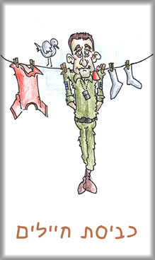 כביסת חיילים - בגדי החיילים והש.ש. שמכובסים ומגוהצים בימי שבת על ידי תורניות. "אני צריכה לקום מוקדם, אני עושה כביסת חיילים".