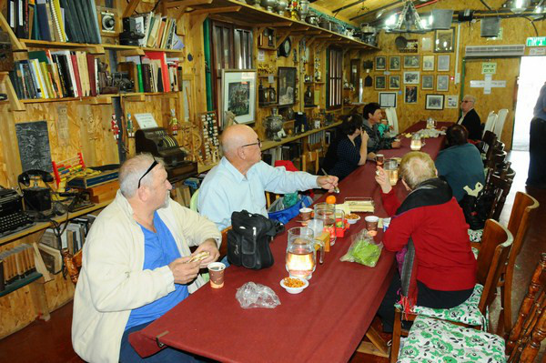 זכינו לקבלת פנים מזמינה לכוס קפה חם והמון סיפורים מעניינים ומלאי הומור על המוצגים השונים שהראה לנו. וכמובן מוזיקה ולבוש מהעיירה שאותם הדגימו גריט ודוד דרור.