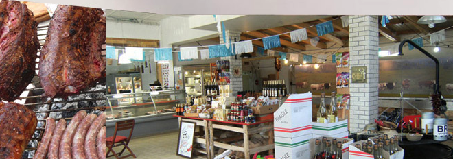 חנות בשר עם שפע נתחים עסיסיים: פילה בקר, אסאדו, צלעות טלה, עגל, נתחי עוף, אנטריקוט ועוד.
